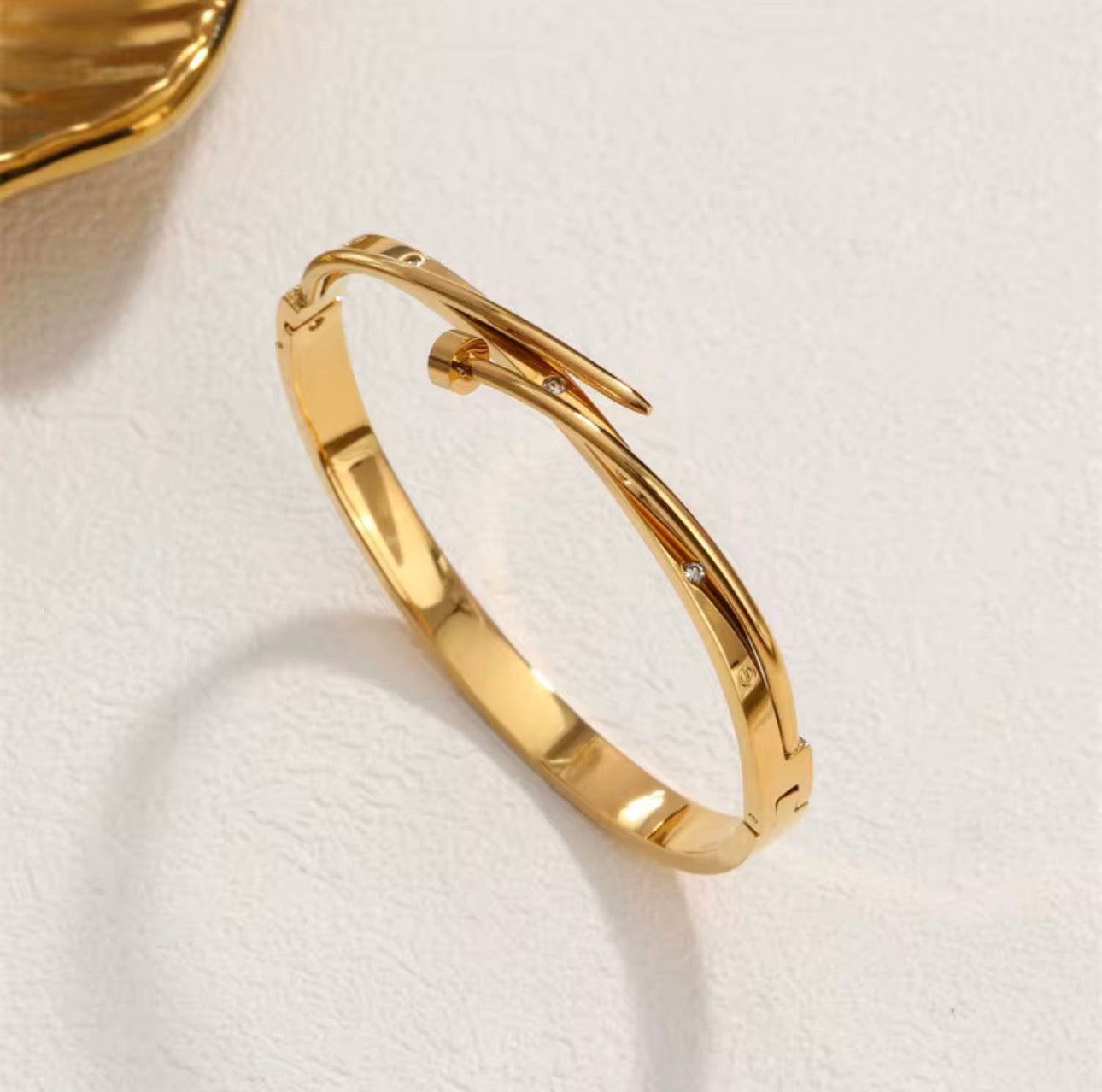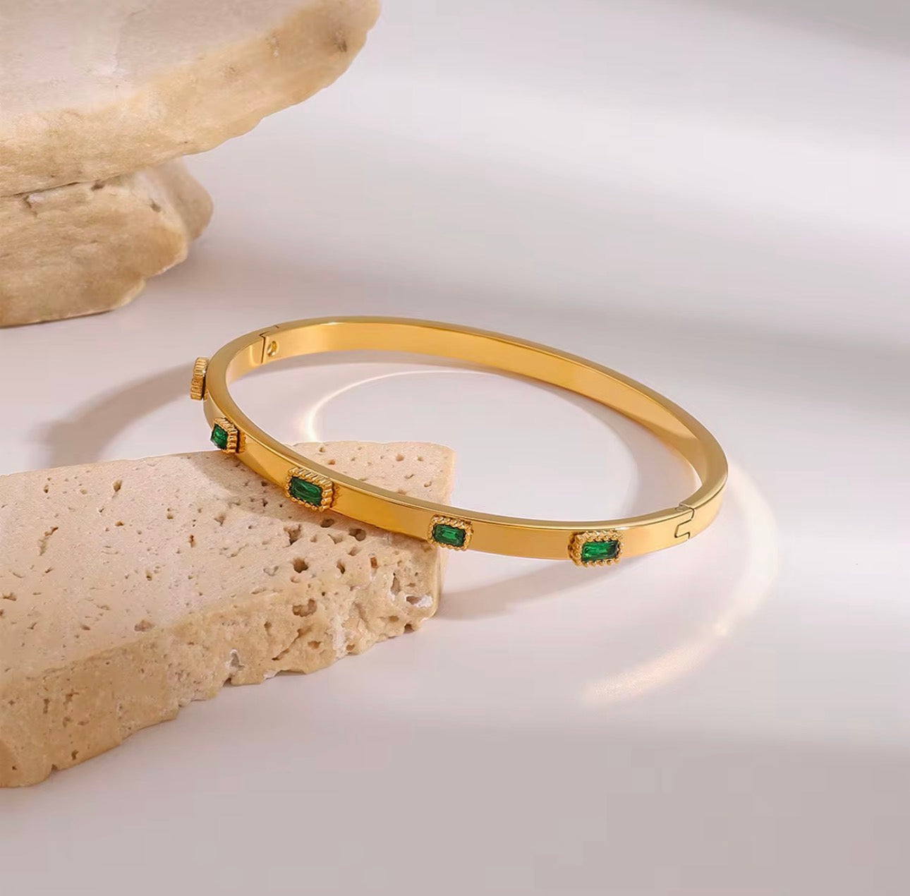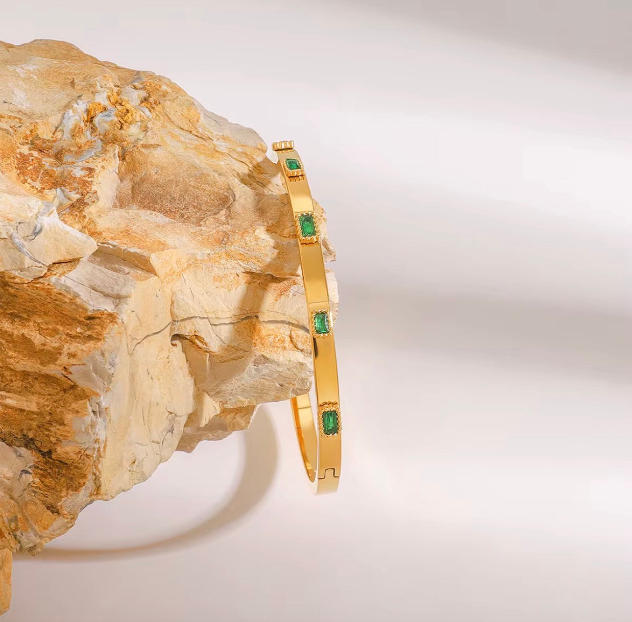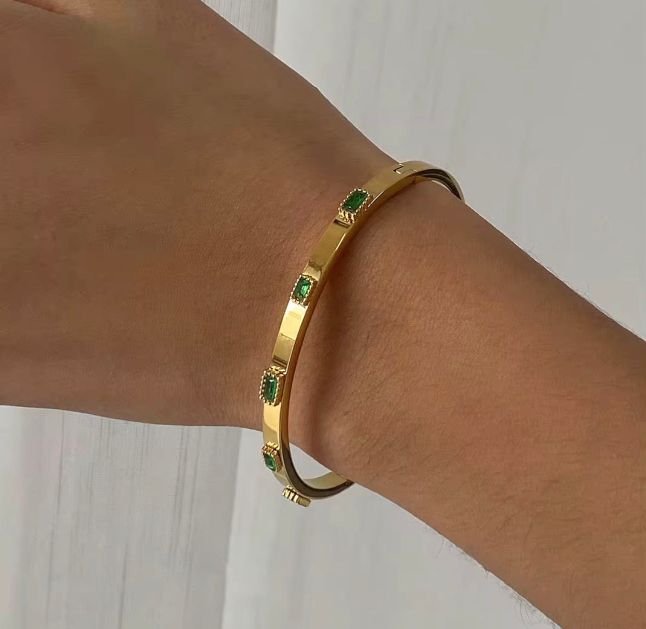 Stone Filled 18k Gold Plated Silver Clover Bracelet