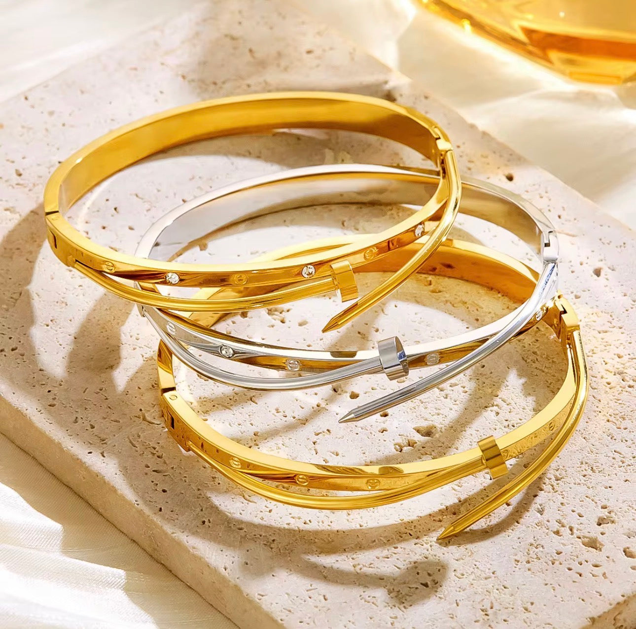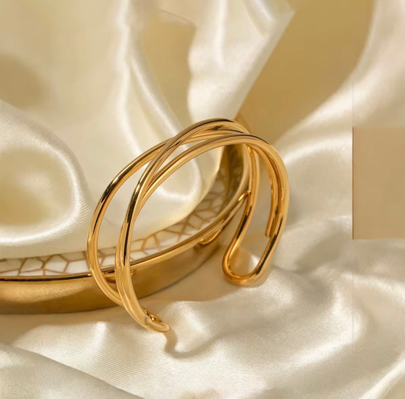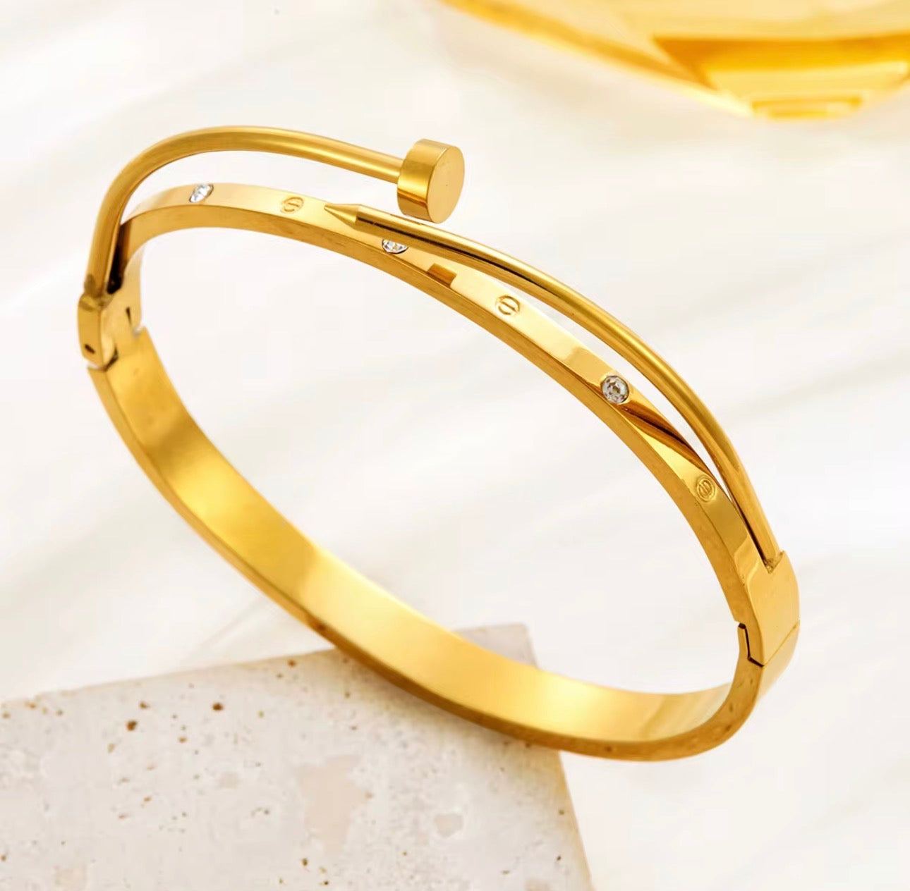 Stone Filled 18k Gold Plated Silver Clover Bracelet
