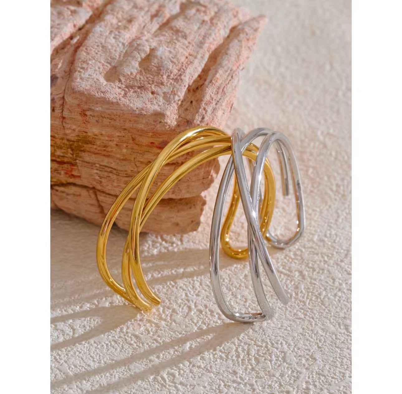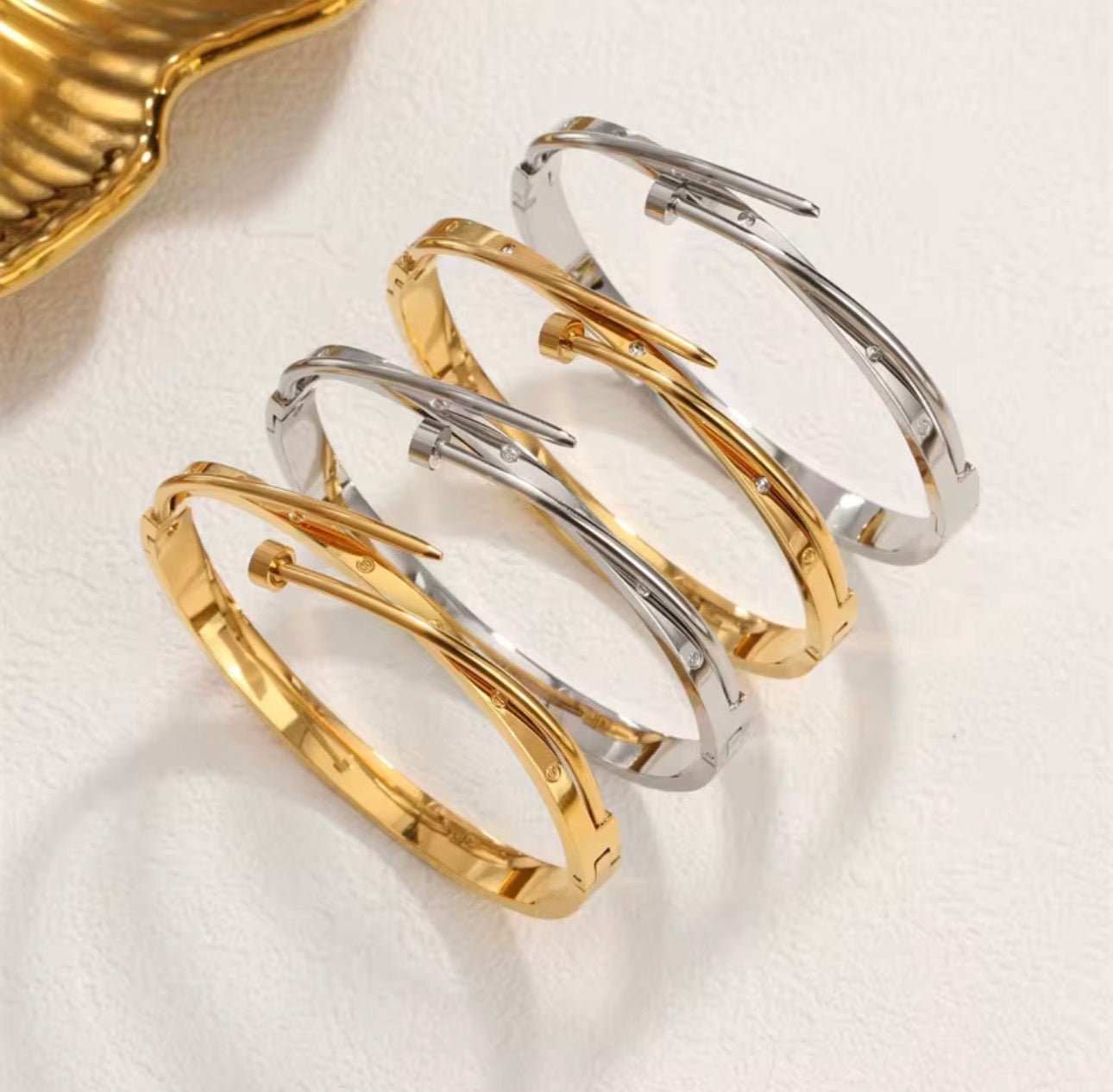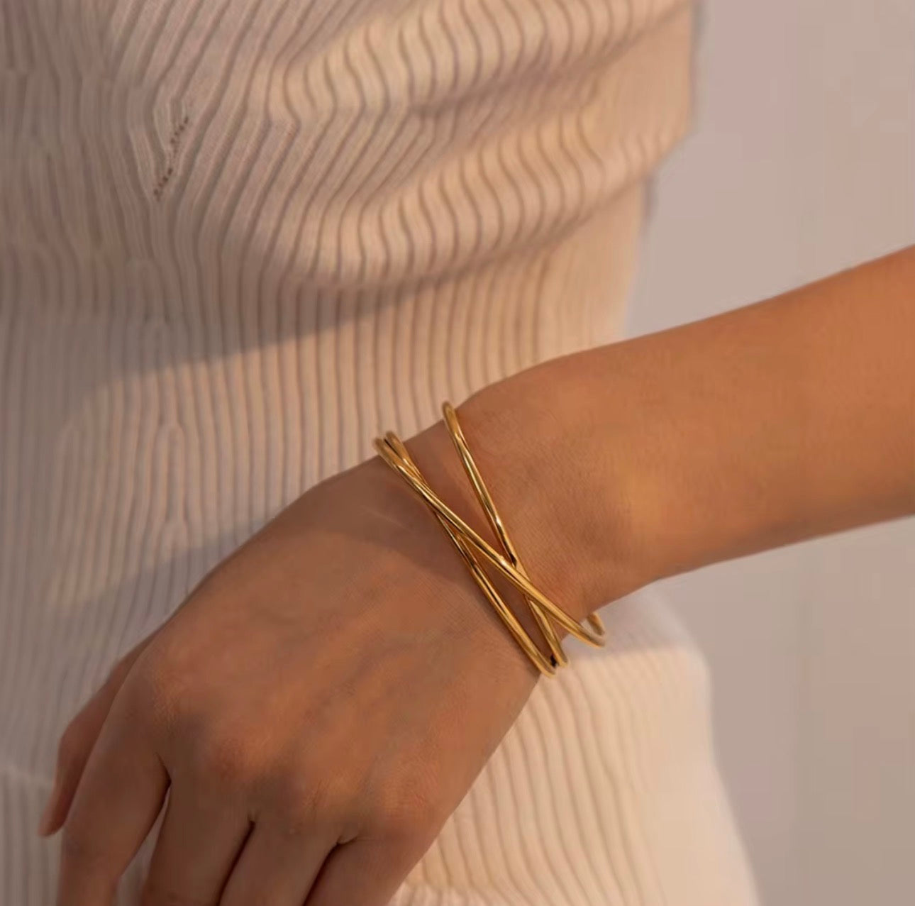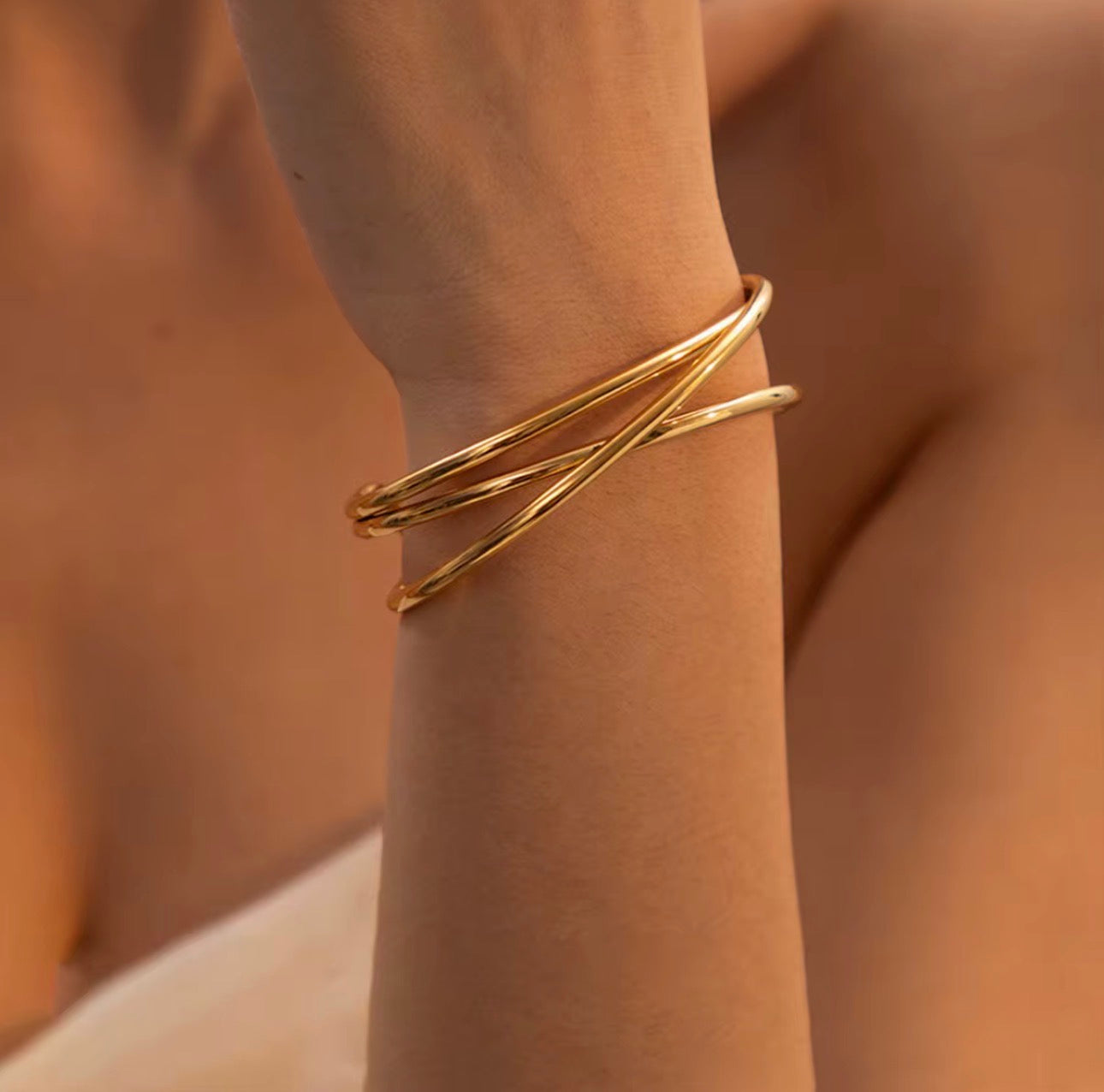 Stone Filled 18k Gold Plated Silver Clover Bracelet